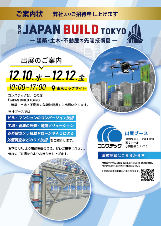 弊社は東京ビッグサイトにて開催される「第10回 JAPAN BUILD TOKYO」に出展いたします。