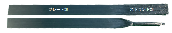 e-アンカーは独自の成形技術により、プレート部とストランド部を組合せたCFRP成形品で、eプレート工法の端部定着に用いる定着体です。ストランド部分をコンクリート孔内に挿入、プレート部分をeプレートに接着することで、eプレート端部の定着を図ります。